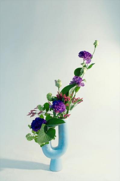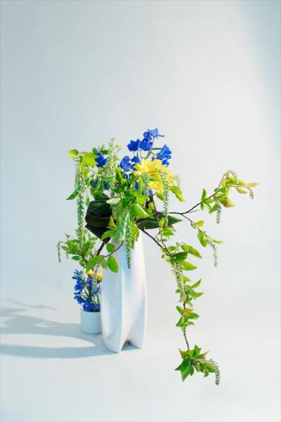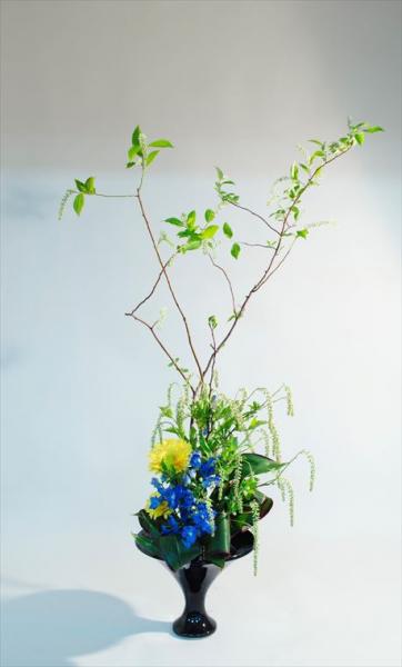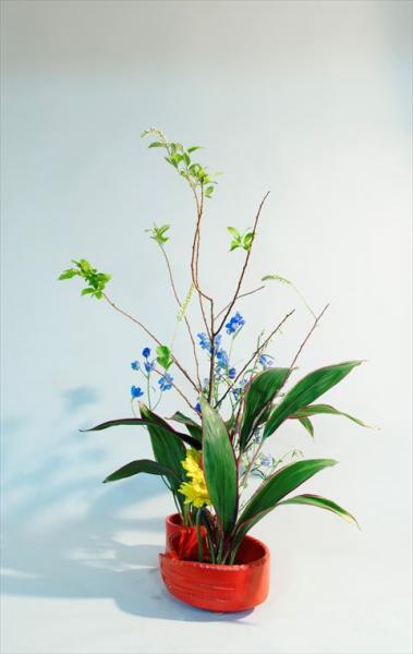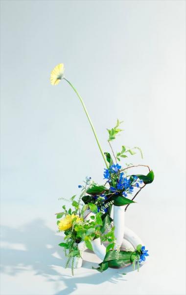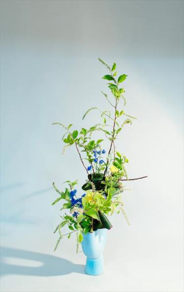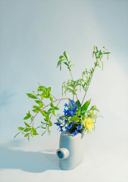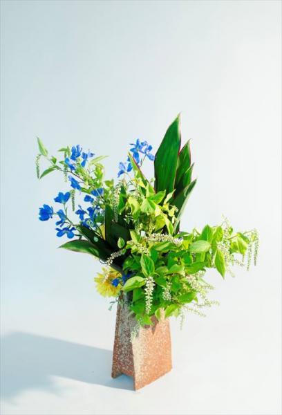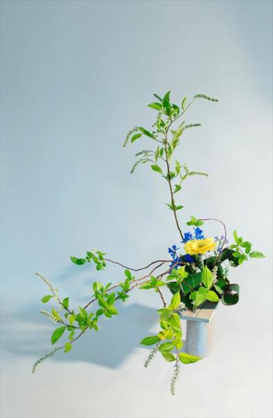合縁奇縁 コバノズイナ、ドラセナレモンレッド、デルフィニウム、ガーベラ