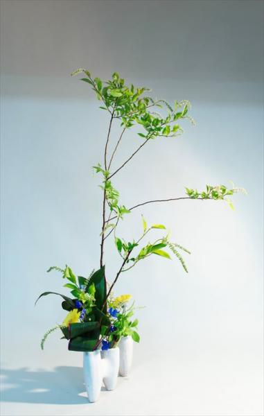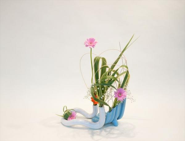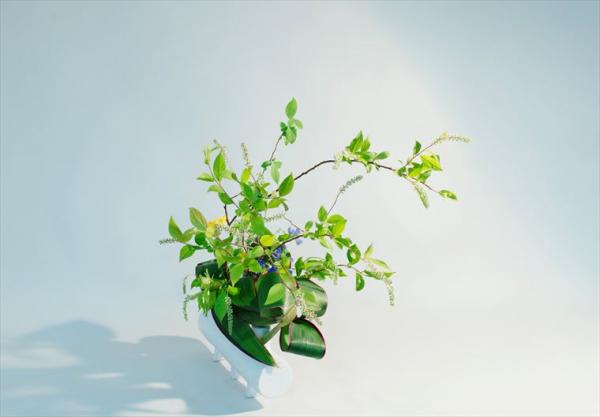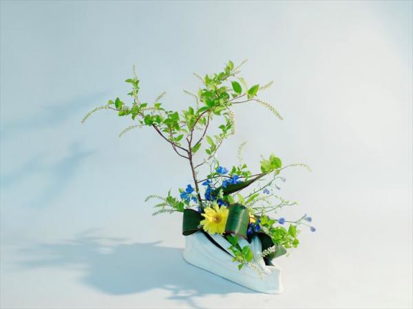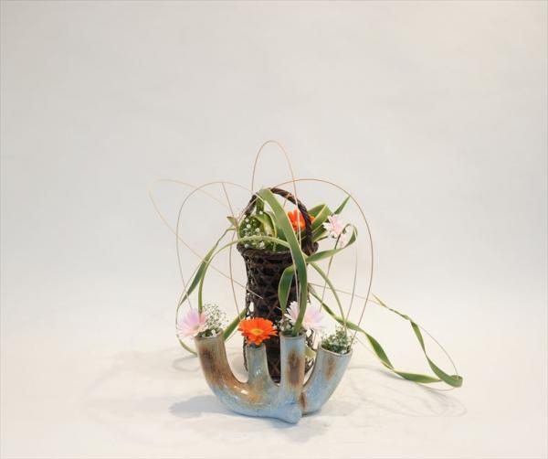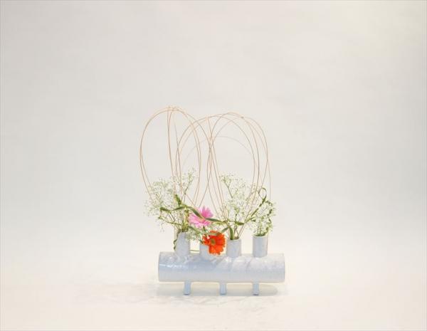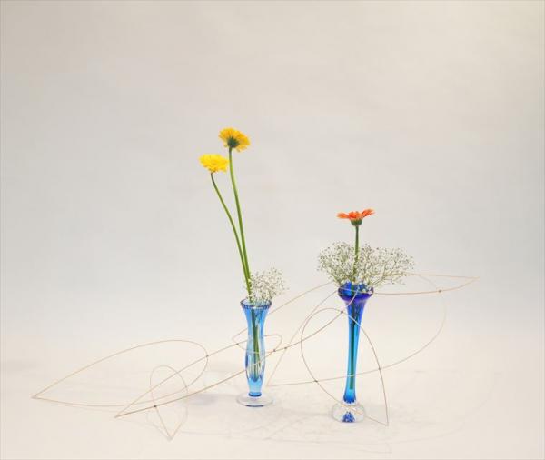 異素材研究 ニューサイラン、ガーベラ、カスミソウ、竹ひご