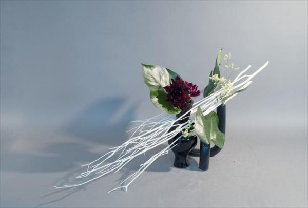 驟雨(しゅうう=にわか雨) 晒ミツマタ、ダリア、キノブラン、モンステラ