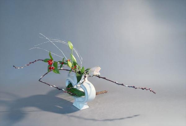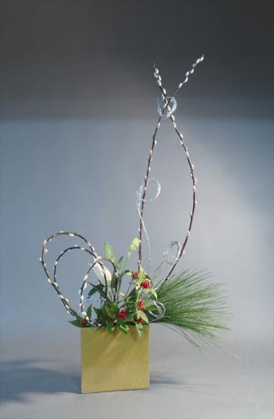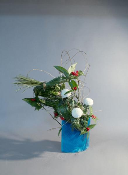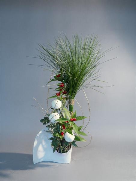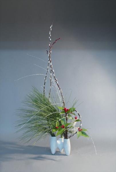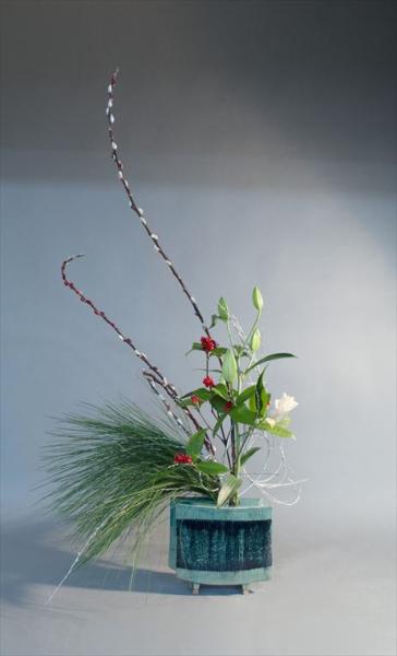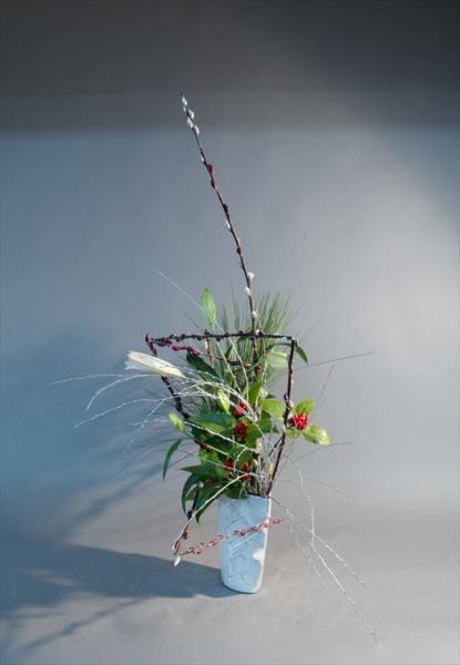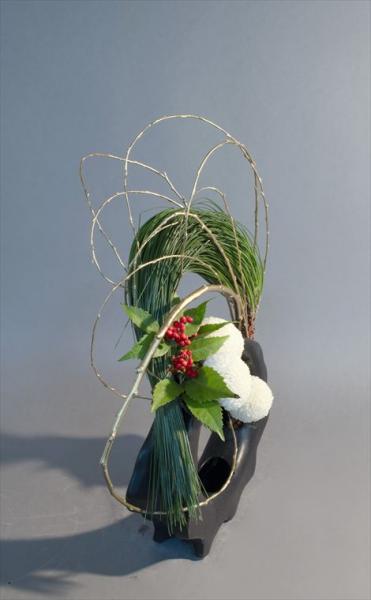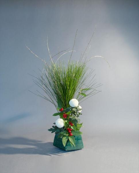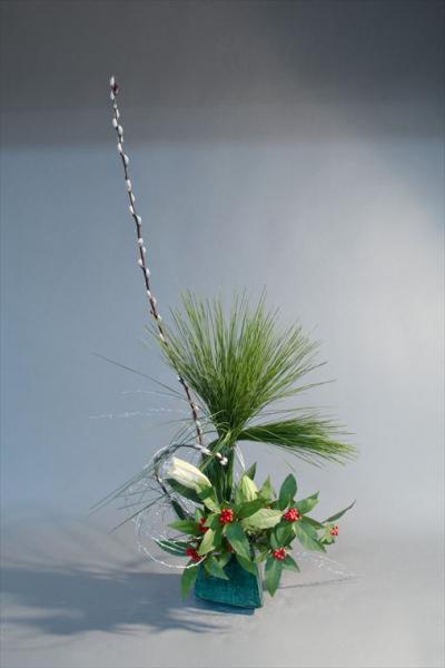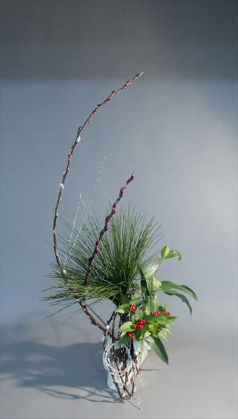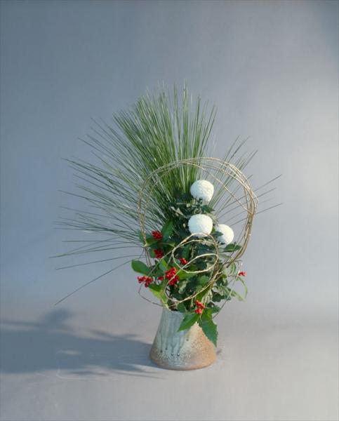 お正月 大王松、千両、菊、柳