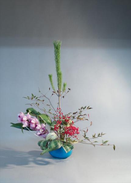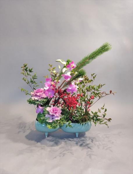 迎春の華 若松、南天、葉牡丹、デンファレ