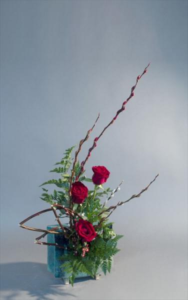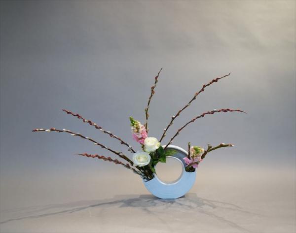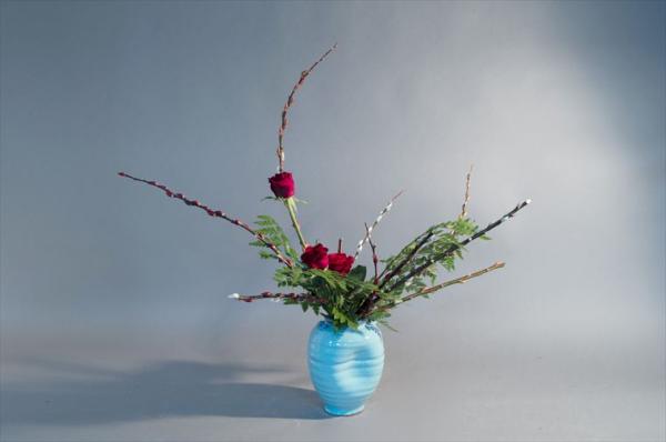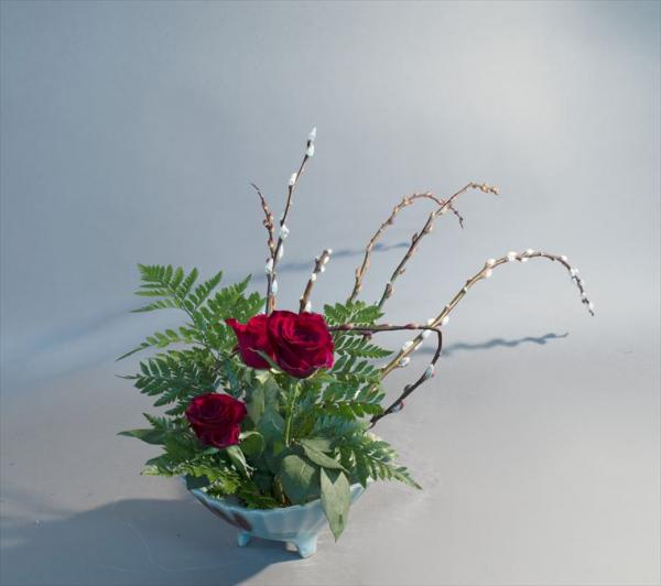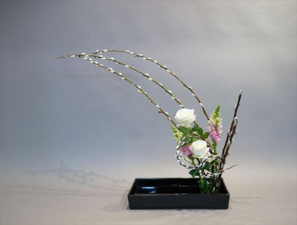 赤目柳、バラ、金魚草