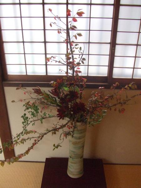 松風花道会の一粒の種が福島に蒔かれて、70年の月日が流れました。この度、支部創立70周年を記念して、いけばな展「心・なごみの花」を開催いたしました。福島市御倉邸(旧日本銀行支店長役宅)を会場に、それぞれのお部屋に沿った花を展示いたしました。純日本家屋で、親しみやすく、身近な生活空間を想定して、活けてみました。