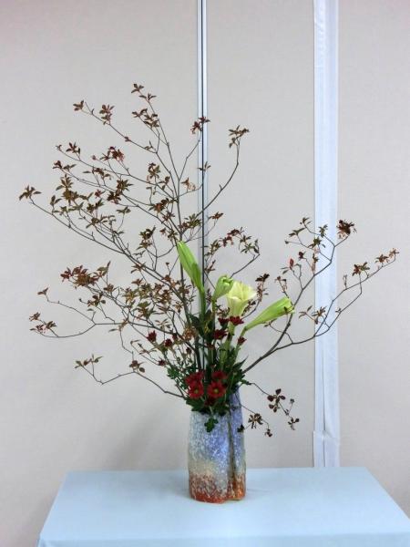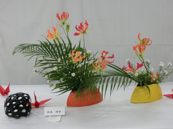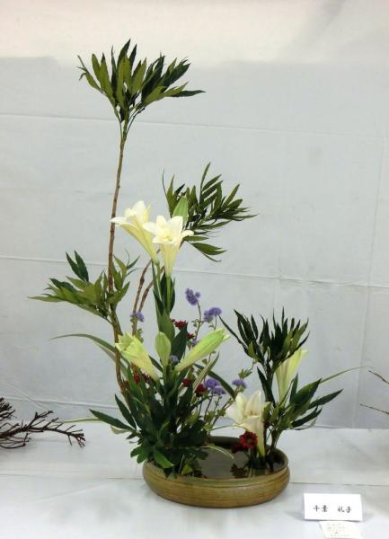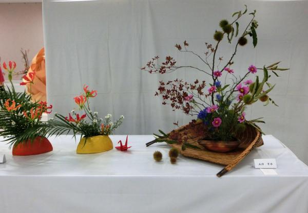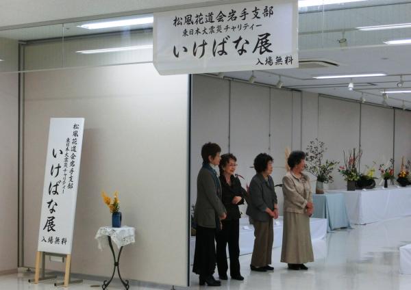 本部会長・橋本栄水会長、中川玲水先生のご協力を頂き、東日本大震災震災復興支援チャリティーいけばな展に、総勢50杯を出瓶いたしました。会場に募金箱を設置し、御来場の方々から募金をお預かりして、一関市社会福祉協議会にお届けし、被災された方々の交流会に使っていただくことになりました。