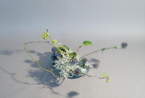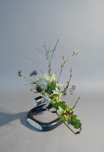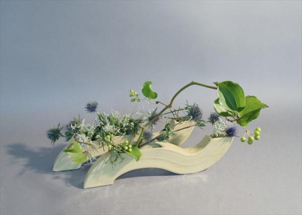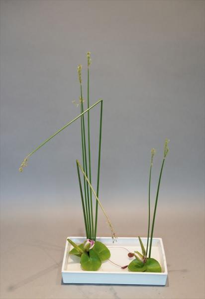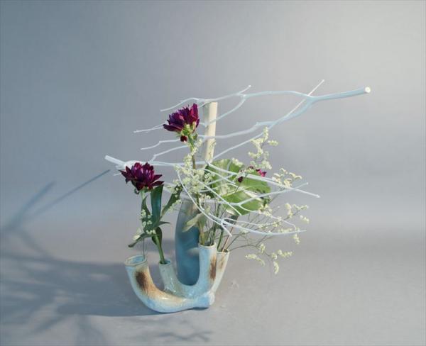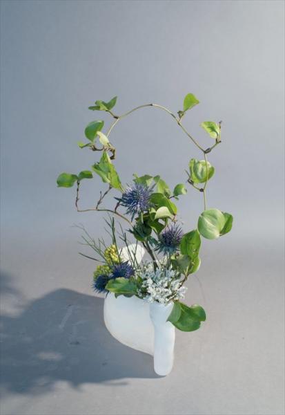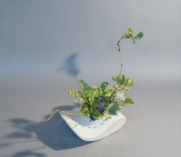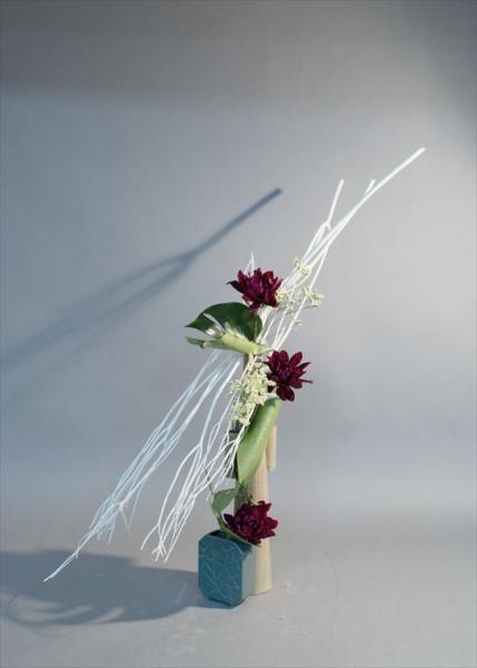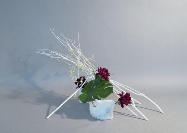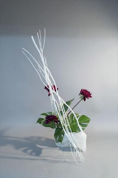 驟雨(しゅうう=にわか雨) 晒ミツマタ、ダリア、キノブラン、モンステラ