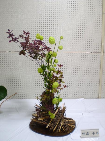 長引く困難な環境の中で開催された福島市市民美術展に、私たち福島支部会員10名が参加しました。無理をせず、身近な花材で、作品を仕上げました。今回の美術展に、いけばな、絵画、工芸、など、多くの分野で、例年になく多くの作品が出展されたことからも、芸術や文化がどれほど心の支えになり、癒しになっていたかを、思い知らされました。会場の中でも、お花の前に立ち止まる方々の後姿が優しく感じられたのは、気のせいでしょうか・・・。
